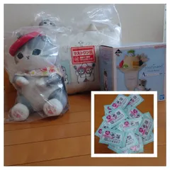 もふもふ😍 mofusand ~Fruit Parlor~引いてきました。B賞ぬいぐるみ狙い💥🔫。初日、10回回引いて、下位ばかり…😢。何とか、C賞ぬいぐるみマスコットが1つ。昨日覗いたら、まだB賞あった‼️残り13枚。全部頂きました(笑)。A、Bラストワンも頂きました😁。